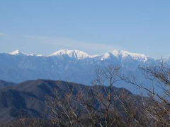川崎の六郷川鉄橋から、白根三山を望見することが出来ることをかつて深Qさんの著書で知り、通勤途中に何回か拝むことができました。小仏峠までは多摩川、そこから先は桂川(相模川)の谷が続き、笹子峠の向こう側に宝石のごとく白く神々しい南アルプスの山々が鎮座しています。谷の左は御坂山塊の本社ヶ丸、右側が大菩薩連稜の滝子山です。