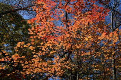 - 秋の好日、落葉広葉樹林を全天紅葉の下、落ち葉を踏み逍遥した一日でした。