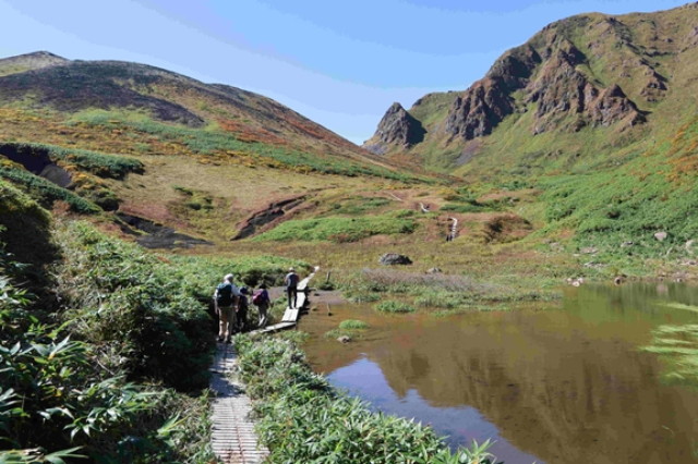 盛岡駅から国見温泉までタクシーを奮発。大焼砂スコリア地帯やムーミン谷の紅葉を楽しみながら秋田駒ヶ岳を目指しました。