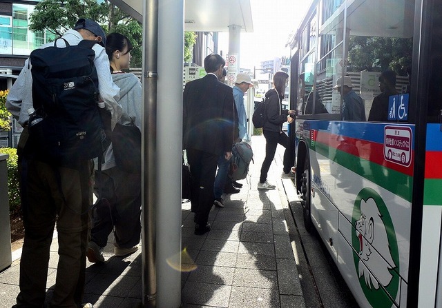 写真①小田原駅東口E5番バス乗り場でバスに乗車