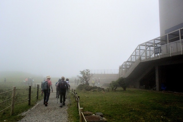 写真⑤ロープウエイ山頂駅到着ガスって寒い