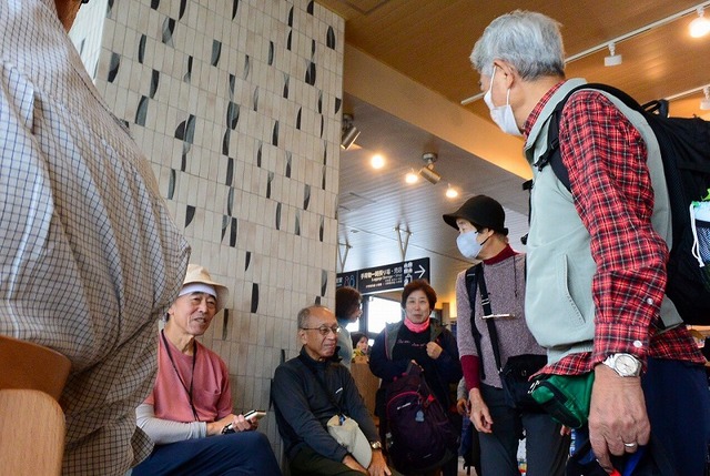 - 先に下った田尻哲さん斎藤恭さん生田恵さんの3名も無事下山して16:15のバスに乗車。