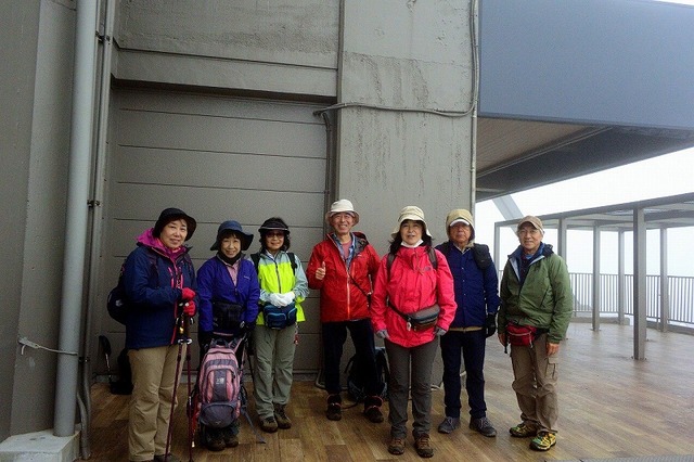 霧も濃く時折霧雨。風も強く寒い状況で「悪天候を押して神山へ行くの??」の声も。