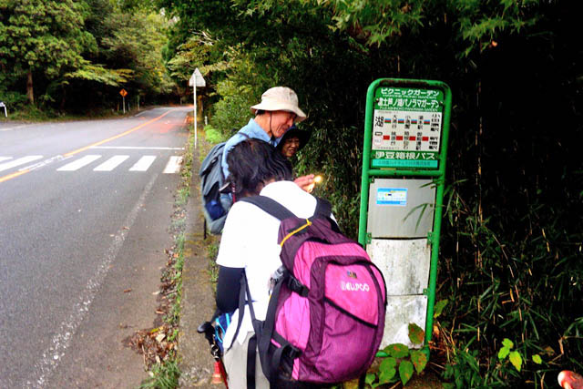 - ロープウエイで下山した「2案チーム」6名は箱根園から15:20発(ただし15:30発車)のPライン小田原駅行きバスに乗車。