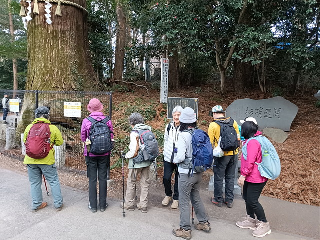 - 12:17高尾山山頂(富士山側展望台) - [昼食] - ビジターセンター13:36 - 14:13薄井薫歌碑14:17 - 14:34たこ杉