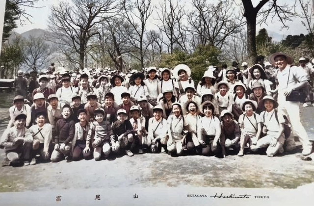 昭和46年(1971) 世田谷区立八幡山小学校6年2組高尾山集合写真(最前列左から6番目が筆者)