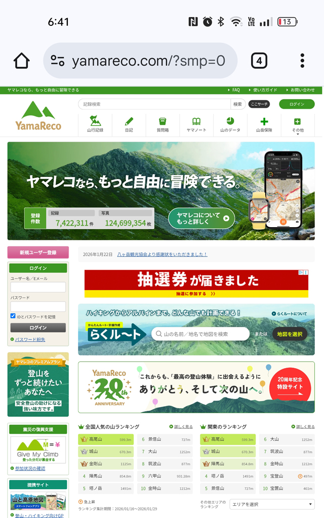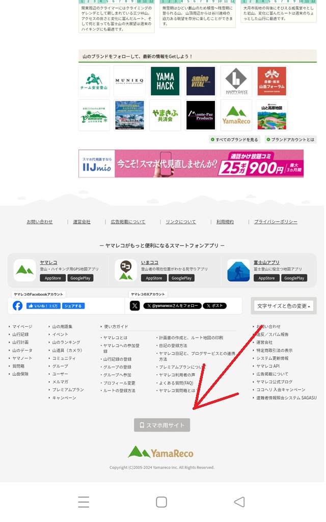 ヤマレコを使った登山計画書をスマホで見るときに、字が小さく見にくい時があります。その場合、たいていはパソコン用の画面がそのまま縮小して表示されています。