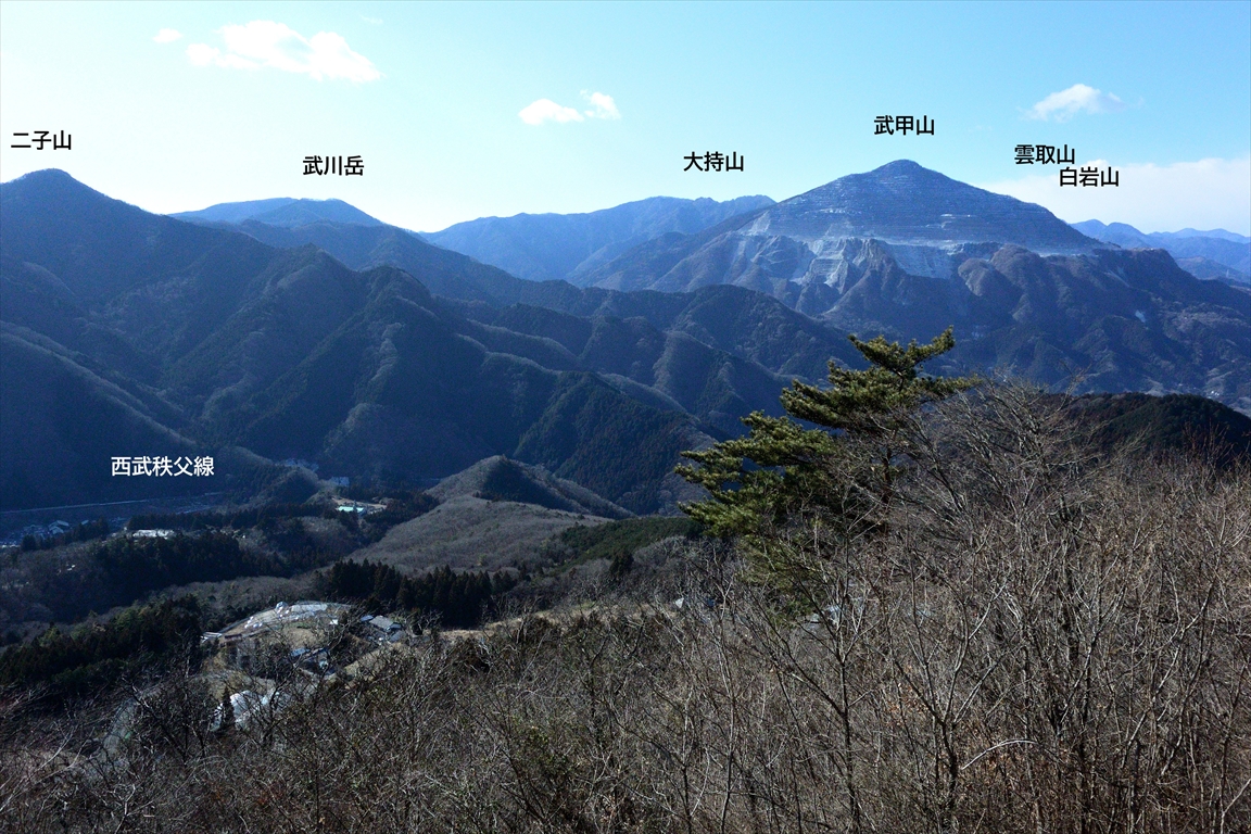 武甲山・大持山・武川岳、二子山・南側に展望が開ける。