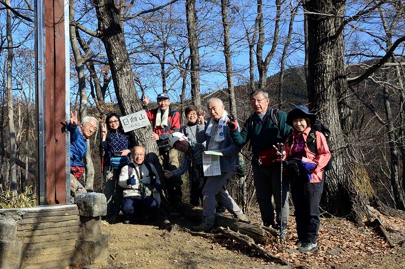 山頂到着。山頂には山座表示盤と木製展望台がある。日向ぼっこしながら早めのランチ。