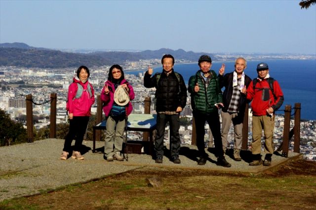 (画像提供:S55舩生克さん)阿弥陀寺は、江戸時代に「弾誓上人」によって開かれた古刹であり、皇女和宮ゆかりの寺としても知られています。静寂に包まれた境内で身を引き締め、いよいよ歩き始めます。目指す塔ノ峰(標高566m)までは、杉林の中の急登が続きますが、木漏れ日が足元を照らし、早春の澄んだ空気が肺を満たしてくれます。山頂からは木々の「隙間から絶景」が広がっていました。